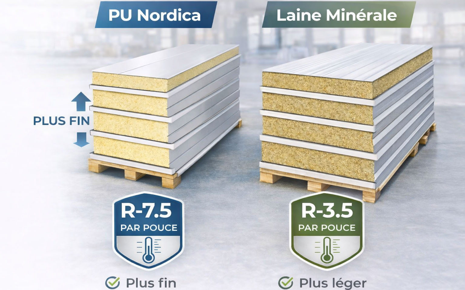 | Critère | PIR Nordica | Laine minérale |