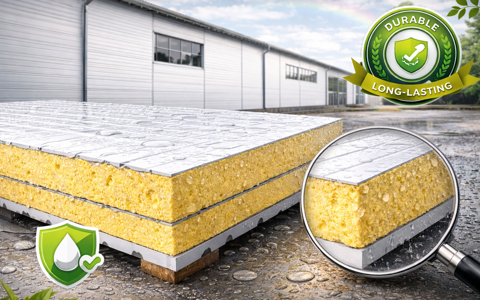 Nos panneaux sont composés de mousse rigide en Polyisocyanurate, conçue pour les enveloppes de bâtiments à haute performance. Ce matériau offre une excellente efficacité thermique, une durabilité à long terme et une optimisation maximale de l’espace, répondant aux exigences des projets commerciaux, industriels et résidentiels.